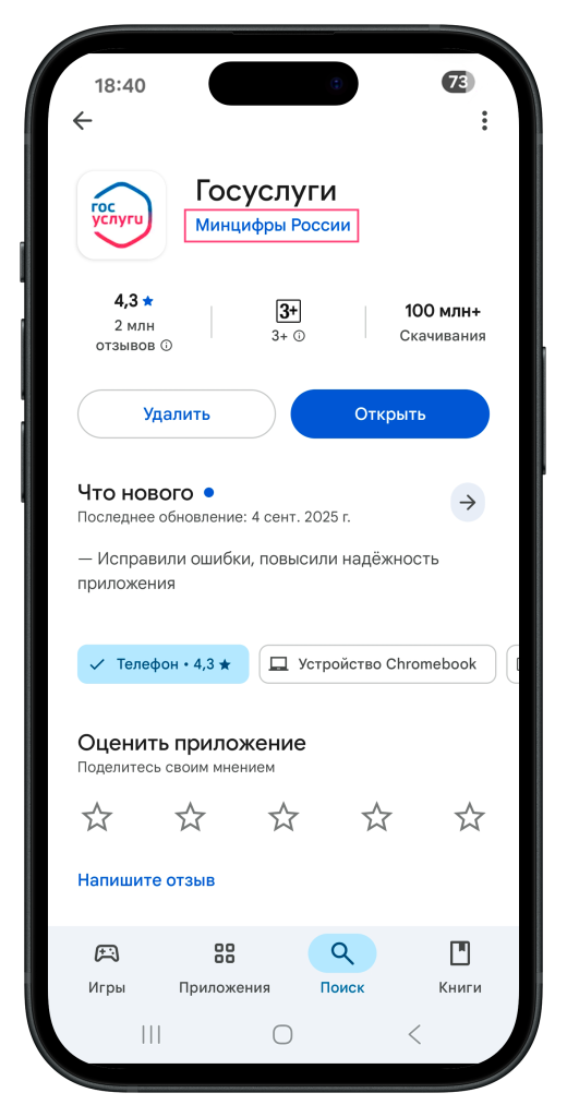 Мы всегда убеждаемся, что скачиваем именно официальное приложение от "Ростелеком" или "Минцифры России", чтобы избежать подделок. После установки открываем его.