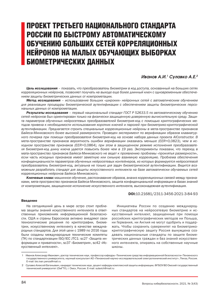 Принципы работы биометрических систем
