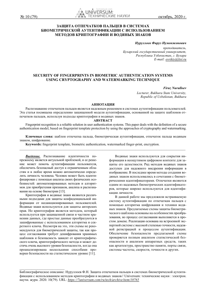| Отпечатки пальцев | Низкий ౼ Средний | Средний | Средняя (с Liveness Detection ─ высокая) | Высокое | Смартфоны, ноутбуки, контроль доступа, электронные платежи |